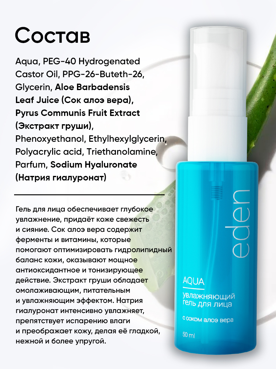 Гель для лица с соком алоэ вера обеспечивает глубокое увлажнение кожи, придает ей свежесть и сияние.