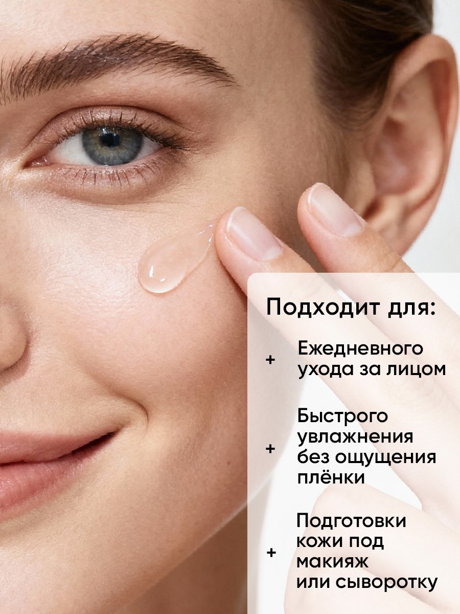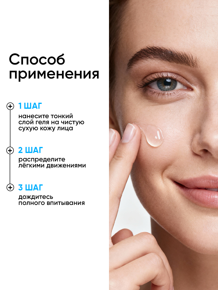 Способ применения: Нанести тонкий слой геля на чистую сухую кожу лица до полного впитывания
