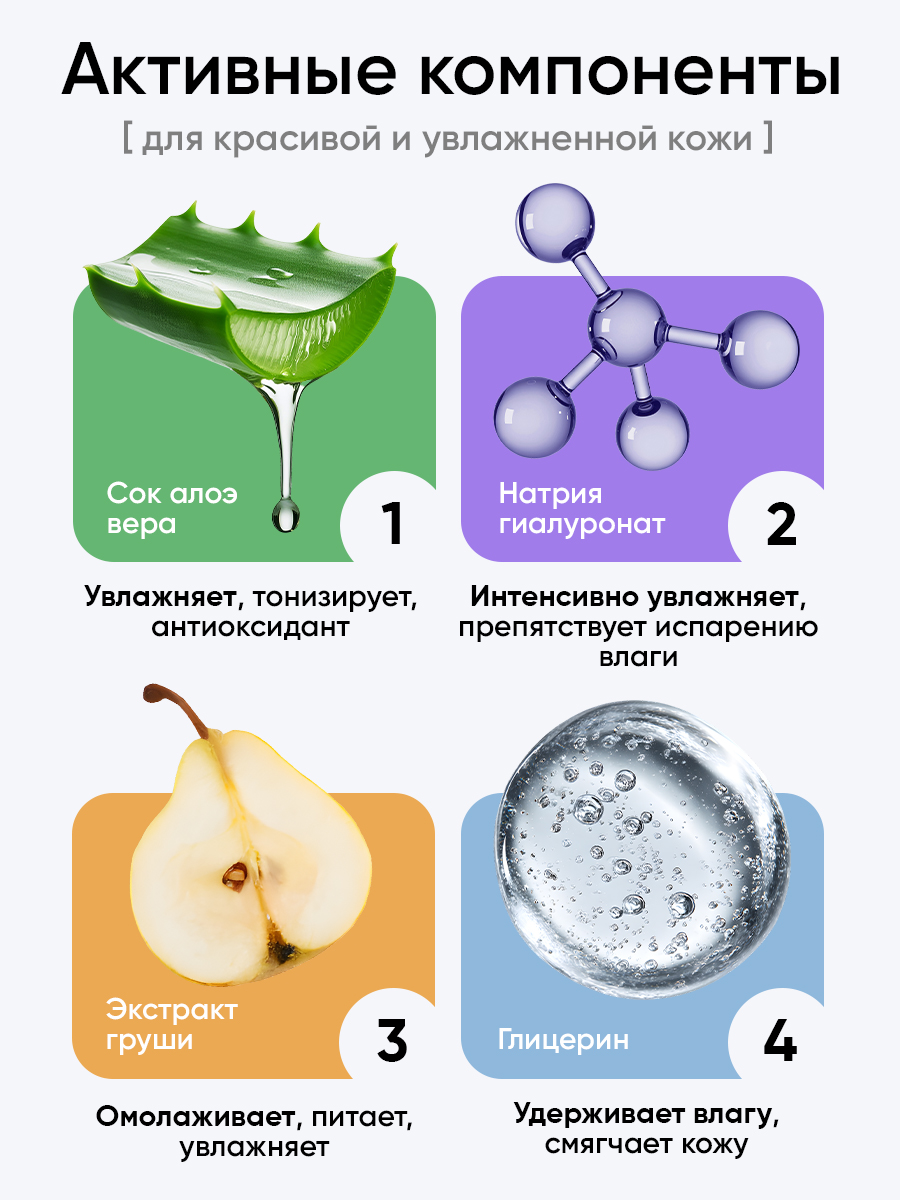 Сок алоэ вера содержит ферменты и витамины, которые помогают поддерживать оптимальный уровень увлажнённости кожи, оказывают мощное антиоксидантное и тонизирующее действие.