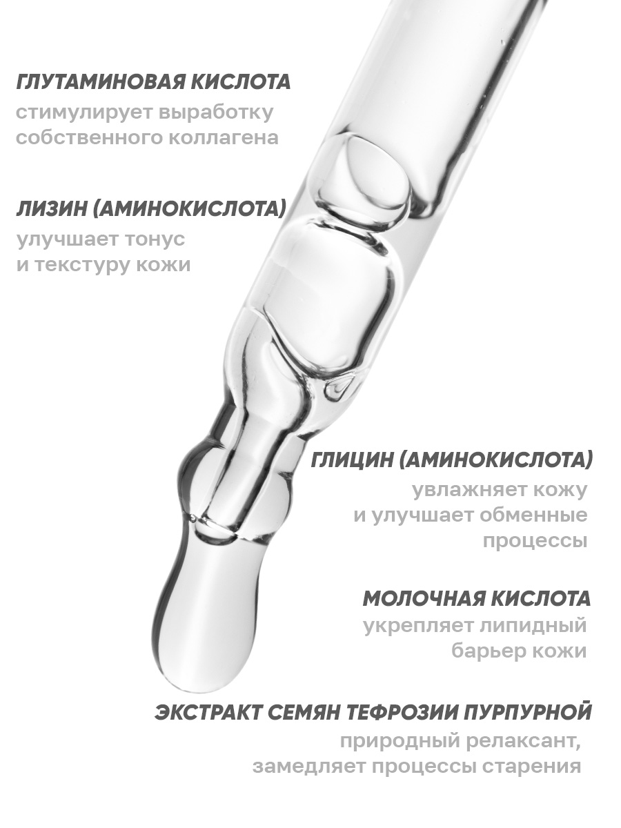Сочетание активных компонентов сыворотки обеспечивает коже антивозрастное действие, уменьшая выраженность морщин и выравнивая микрорельеф кожи.