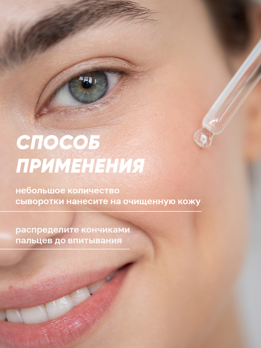 Способ применения: Небольшое количество сыворотки нанесите на очищенную кожу, распределите кончиками пальцев.