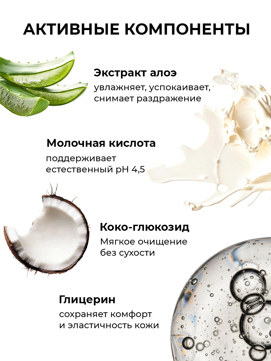 Экстракт алоэ в составе увлажняет кожу, предотвращает появление сухости, обеспечивает комфорт и чувство свежести.