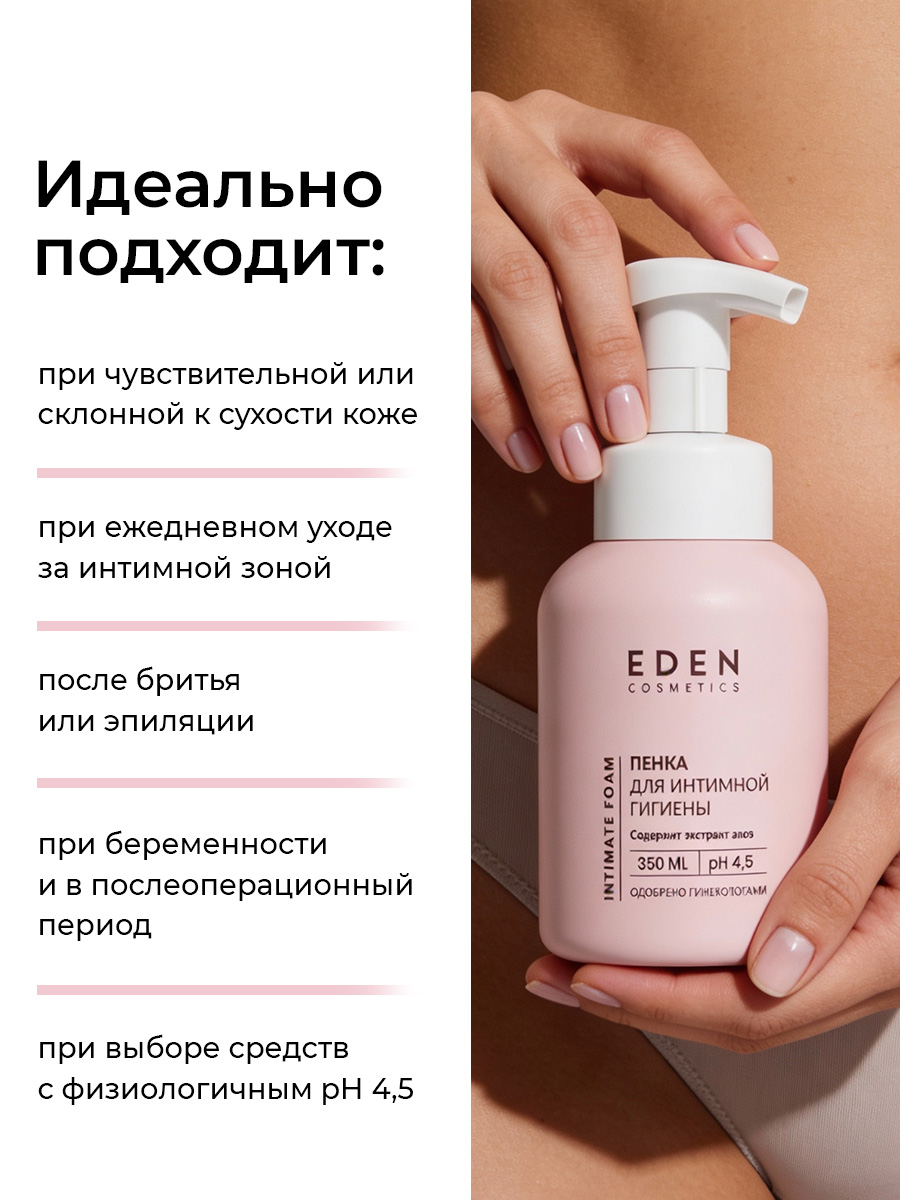 Пенка для интимной гигиены обеспечивает деликатный ежедневный уход за нежной кожей интимной зоны, поддерживая оптимальный pH баланс.