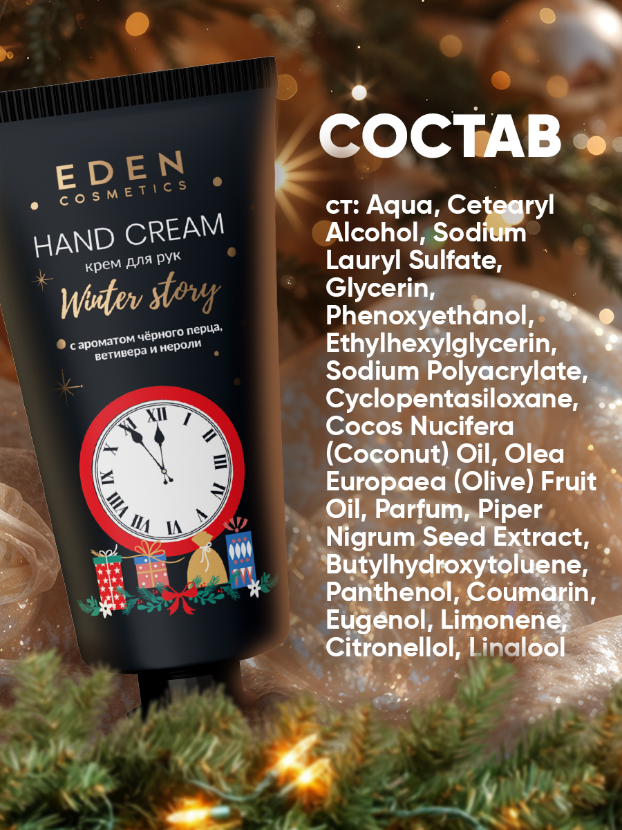 Насладитесь пряным ароматом чёрного перца, ветивера и нероли, воплощённым в креме для рук «Winter story».